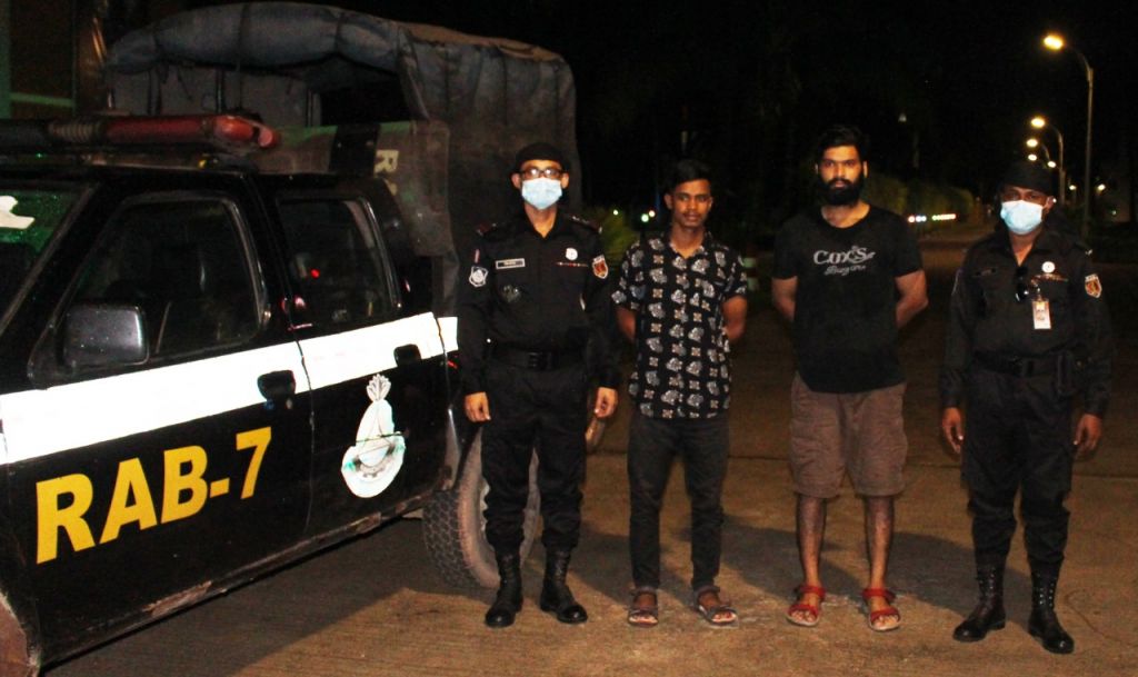 গ্রেফতারকৃতরা হলেন, কক্সবাজার জেলার টেকপাড়া এলাকার মৃত রহমত আলীর ছেলে মোঃ আকাশ আলম (২২), ফেনী জেলার চম্পকনগর এলাকার আবু আহাম্মদের ছেলে মোঃ আব্দুল করিম শামীম (২১)।