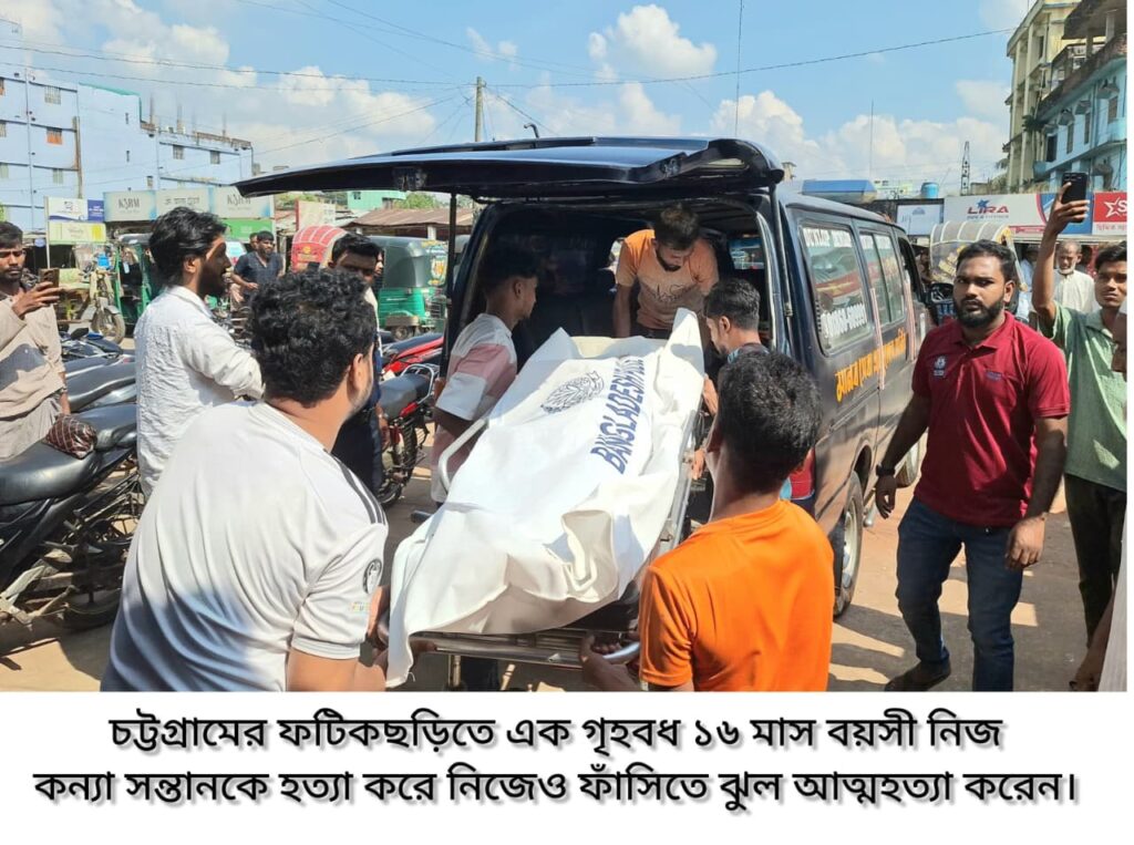 চট্টগ্রামের ফটিকছড়িতে ১৬ মাস বয়সী কন্যা সন্তানকে বালিশচাপা দিয়ে হত্যার পর আত্মহত্যা করেছেন আফরোজা আফরিন (৩০) নামে এক গৃহবধূ।