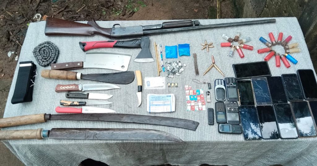 এ সময় তাদের কাছ থেকে একটি রাইফেল, তিনটি অ্যামুনিশন, পিস্তলের ছয় রাউন্ড গুলি, সাতটি কার্তুজ, ১১টি ব্যাংক কার্তুজ, ১৬টি মোবাইল ফোন, একটি চাইনিজ কুড়াল, দুটি পাহাড়ি দা, সাতটি চাকু, একটি লোহার চেইনসহ ইয়াবা, মদ ও গাঁজা উদ্ধার করা হয়।