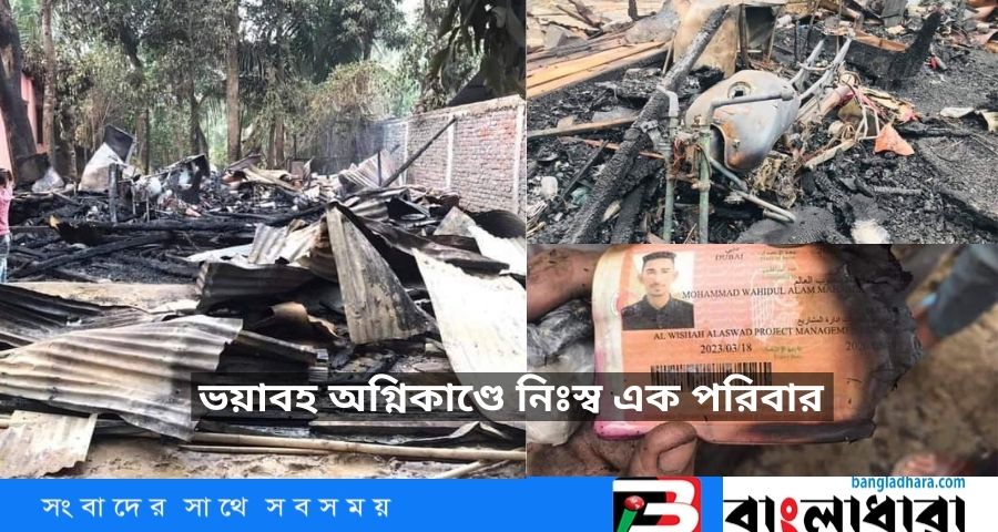 ফটিকছড়ি উপজেলার লেলাং ইউনিয়নের চম্পাতলী এলাকার নাজির আলী সওদাগর বাড়িতে (প্রকাশ আছমার বাপের বাড়িতে) ভয়াবহ অগ্নিকাণ্ডে নিঃস্ব এক পরিবার।