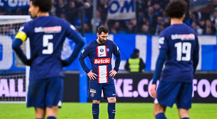 ইনজুরিতে পড়ার কারণে এমবাপ্পে ছাড়াই ফরাসি কাপে খেলতে নামতে হয়েছে পিএসজিকে। লিওনেল মেসি ও নেইমার জুনিয়র থাকার পরও গোলের দেখা পাননি কেউই। মার্সেইয়ের কাছে হেরে বিদায় নিতে হয়ে ফরাসি কাপ থেকে।