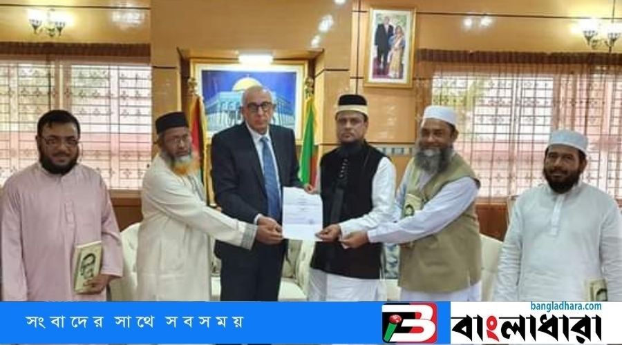 ফিলিস্তিনি জনগণের প্রতি সহানুভুতি ও সহমর্মিতা প্রকাশ করতে সশরীরে উপস্থিত হওয়ায় ফিলিস্তিনি রাষ্ট্রদূত মি. ইউসুফ এস ওয়াই রামাদান প্রফেসর ড. আবু রেজা মুহাম্মদ নেজামুদ্দিন নদভী এমপি’র নেতৃত্বে প্রতিনিধি দলকে স্বাগত জানান।