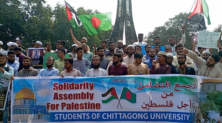 ফিলিস্তিনি শান্তিকামী জনগণের উপর ইসরায়েলি আগ্রাসন ও বর্বরতার বিরুদ্ধে প্রতিবাদ জানিয়ে বিক্ষোভ সমাবেশ করেছে চট্টগ্রাম বিশ্ববিদ্যালয়ের (চবি) শিক্ষার্থীরা। এসময় আন্দোলনকারীরা ফিলিস্তিনদের পক্ষে সংহতি জানিয়ে ইসরায়েল মুরতাবাদ, ফিলিস্তিন জিন্দাবাদ; ইন্তিফাদা, ইন্তিফাদা; ইসরায়েল নিপাত যাক, ফিলিস্তিন মুক্তিপাকসহ প্রভৃতি স্লোগান দেয়।