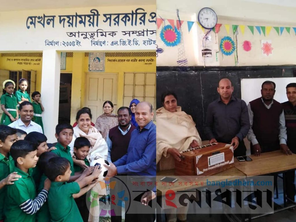 হাটহাজারী উপজেলার মেখল দয়াময়ী সরকারী প্রাথমিক বিদ্যালয়ের ছাত্র-ছাত্রীদের সারপ্রাইজ হিসেবে ফুটবলের পাশাপাশি হারমোনিয়াম দিল উপজেলা প্রশাসন।
