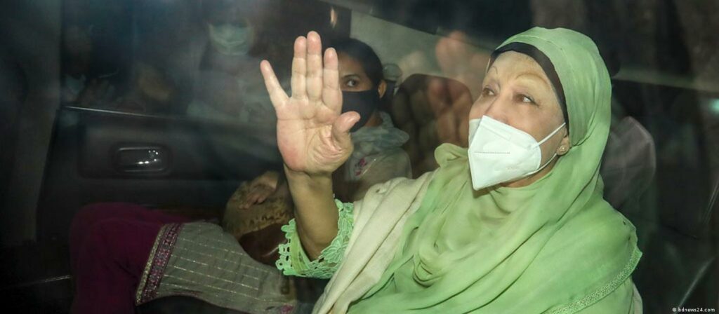 দেশে করোনাভাইরাসের প্রাদুর্ভাবের পর পরিবারের আবেদনে ২০২০ সালে প্রধানমন্ত্রী শেখ হাসিনা তার নির্বাহী ক্ষমতা প্রয়োগ করে খালেদার দণ্ড স্থগিত করেন ছয় মাসের জন্য। ওই বছরের ২৫ মার্চ খালেদা জিয়া মুক্তি পাওয়ার পর থেকে গুলশানে তার বাড়িতে রয়েছেন। প্রতি ৬ মাস পরপর তার মুক্তির মেয়াদ বাড়ানো হচ্ছে পরিবারের আবেদনে।