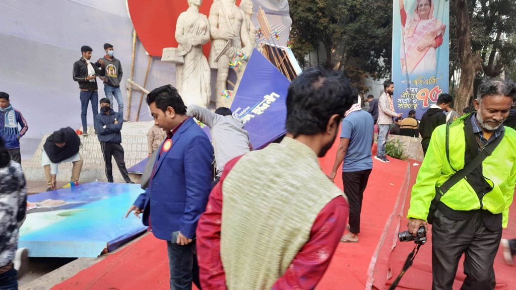শুক্রবার (৬ জানুয়ারি) বিকেল সোয়া ৪টার দিকে ঢাকা বিশ্ববিদ্যালয়ের (ঢাবি) অপরাজেয় বাংলার পাদদেশে আয়োজিত ওই অনুষ্ঠানে ওবায়দুল কাদেরের বক্তব্য শুরুর ১৪ মিনিটের মাথায় এ ঘটনা ঘটে।