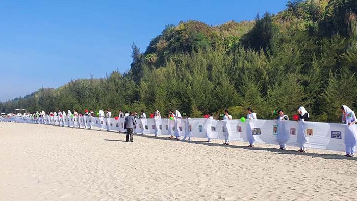 মুজিববর্ষ উপলক্ষে বুধবার দুপুরে কক্সবাজারের হিমছড়ি সমুদ্র সৈকতে এ আলোকচিত্র প্রদর্শনীর আয়োজন করা হয়েছে। পরে শিক্ষার্থীরা আলোকচিত্র সম্বলিত ব্যানার নিয়ে হেঁটে সৈকত প্রদক্ষিণ করে।