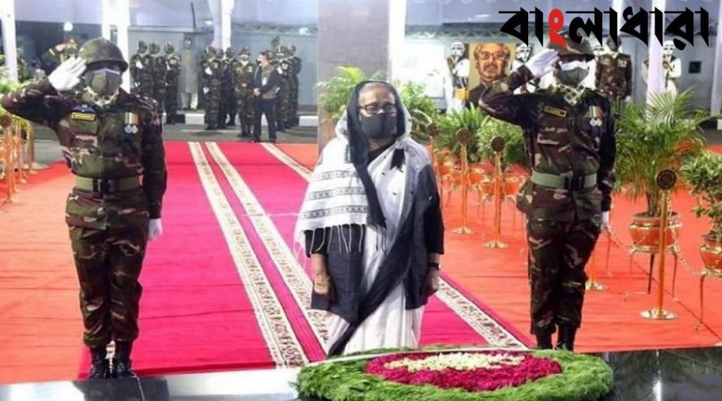 প্রধানমন্ত্রীর শ্রদ্ধা নিবেদনের পর ধানমন্ডি ৩২ নম্বরে বঙ্গবন্ধুর প্রতিকৃতিতে শ্রদ্ধা নিবেদন করেন জাতীয় সংসদের স্পিকার ড. শিরিন শারমিন চৌধুরী, প্রধান বিচারপতি সৈয়দ মাহমুদ হোসেন।