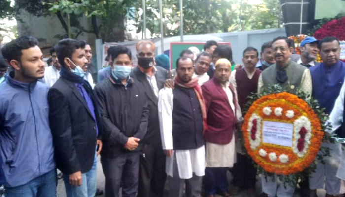 বিজয় দিবস ও সুবর্ণজয়ন্তী উপলক্ষে বঙ্গবন্ধুর প্রতিকৃতিতে পুষ্পস্তবক অর্পণ করেছে চট্টগ্রাম সিটি করপোরেশন অস্থায়ী শ্রমিক কর্মচারী ঐক্য পরিষদ।