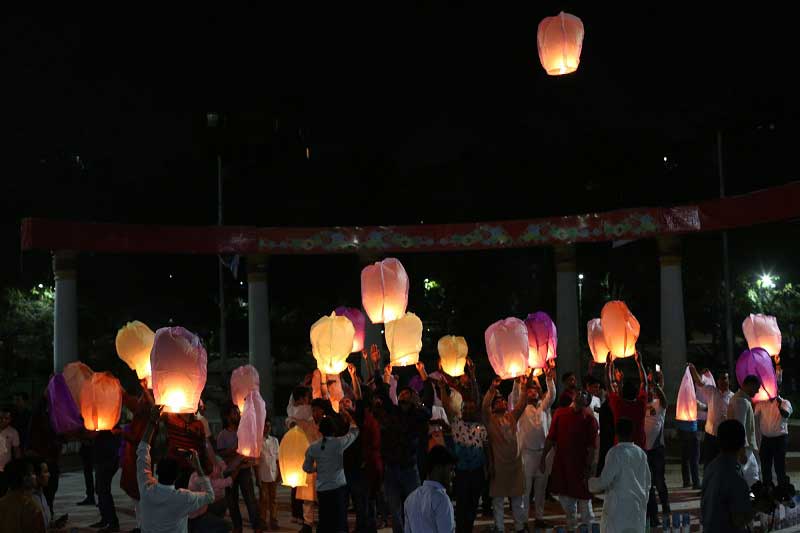 হাতিরঝিলের আকাশে ওড়ানো হয়েছে ১০০টি ফানুস। এর পরই হাতিরঝিলের এম্ফিথিয়েটারে শুরু হয় লেজার শো। লেজার শো শেষ হওয়ার সঙ্গে সঙ্গে হাতিরঝিলের আকাশ আলোকিত হতে থাকে আতশবাজির ঝলকানিতে। এ সময় আতশবাজির উজ্জ্বল আলোয় পুরো হাতিরঝিল এলাকা আলোকিত হয়ে ওঠে।