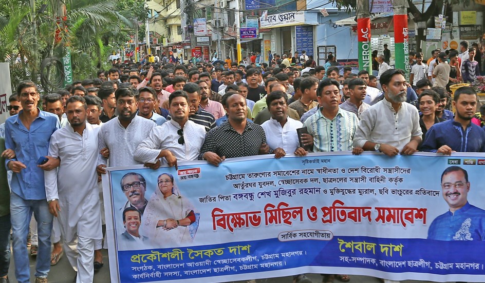 চট্টগ্রামে বিএনপি’র তারুণ্যের সমাবেশে যোগ দিতে যাওয়ার সময় বিএনপি’র নেতাকর্মীদের হামলায় মুক্তিযুদ্ধের ঐতিহাসিক দলিল ও বঙ্গবন্ধুর বর্ণাঢ্য রাজনৈতিক জীবনের স্থিরচিত্র সম্বলিত ট্যাম্পার্ড, ম্যুরাল ভাঙচুরের ঘটনায় চট্টগ্রামের সর্বত্র নিন্দা ও প্রতিবাদে বিক্ষুব্ধ হয়ে উঠছে রাজপথ। এ ধরনের ঘৃণ্য-ধ্বংসাত্মক-স্বাধীনতা বিরোধী কর্মকাণ্ডের সঙ্গে জড়িতদের অবিলম্বে গ্রেফতার ও দৃষ্টান্তমূলক শাস্তি দাবি করা হয়। পাশাপাশি তাদেরকে সামাজিকভাবে প্রতিহত করারও ডাক দেয়া হয়।