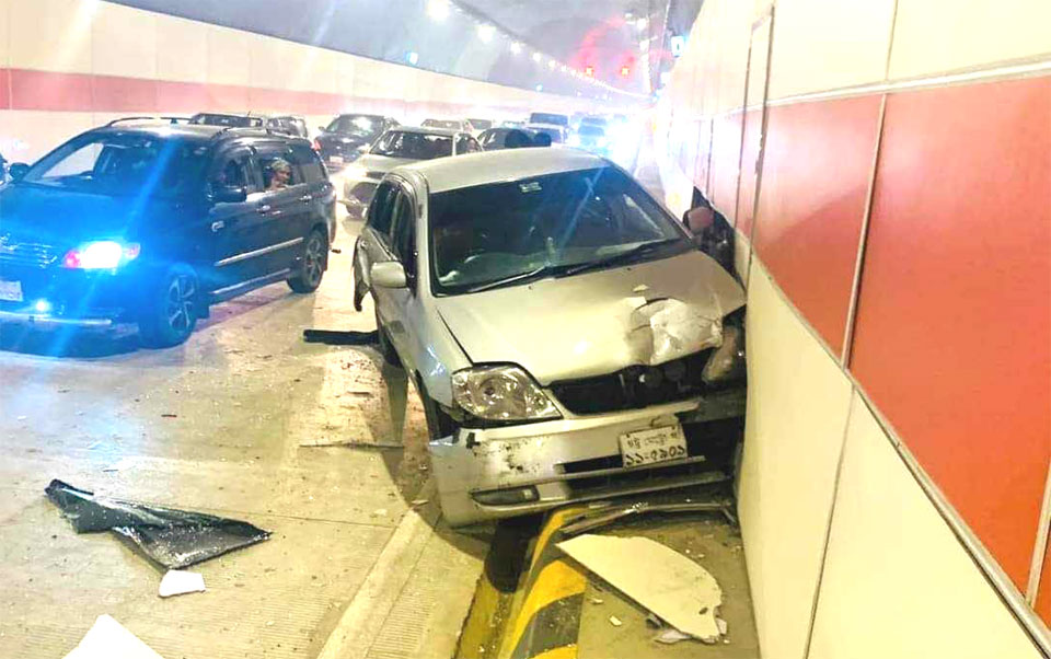 প্রত্যক্ষদর্শীরা জানান, রাত ৯টার দিকে টানেলের পতেঙ্গা প্রান্ত থেকে আনোয়ারায় আসার সময় টানেলের মাঝপথে একটা প্রাইভেট কারকে পেছন থেকে ধাক্কা দেয় একটি যাত্রীবাহী বাস। ধাক্কা লেগে টানেলের রিলিংসের সাথে ধাক্কা লেগে কারটির সামনের অংশ ভেঙে গেছে। বাসটিও সেখানে বন্ধ অবস্থায় রয়েছে।