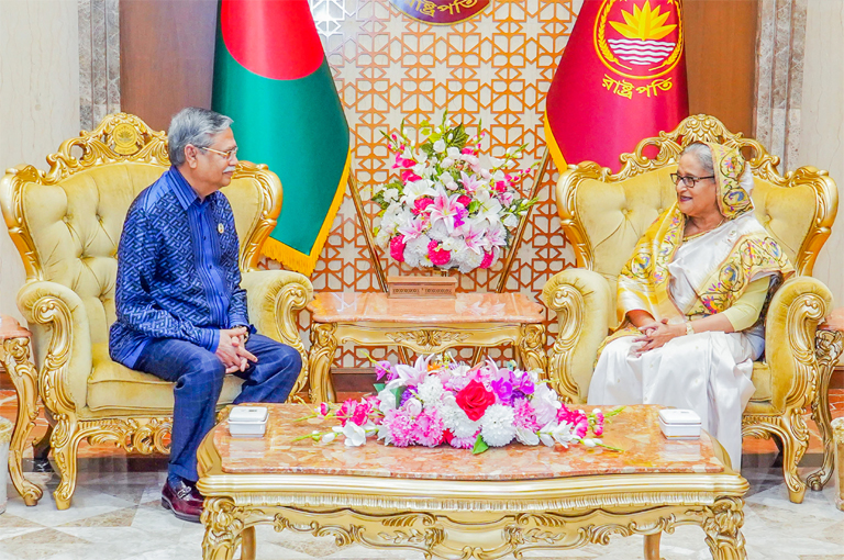 বাংলাধারা ডেস্ক : রাষ্ট্রপতি মো. সাহাবুদ্দিনের সঙ্গে গতকাল সন্ধ্যায় বঙ্গভবনে সাক্ষাৎ করেছেন প্রধানমন্ত্রী শেখ হাসিনা। রাষ্ট্রপতির প্রেস সচিব মো. জয়নাল আবেদীন জানান, ‘প্রধানমন্ত্রী বিভিন্ন রাষ্ট্রীয় গুরুত্বপূর্ণ বিষয় নিয়ে আলোচনা করেছেন। এর মধ্যে রয়েছে- তাঁর সাম্প্রতিক জাপান, যুক্তরাজ্য এবং মার্কিন যুক্তরাষ্ট্র সফর।’