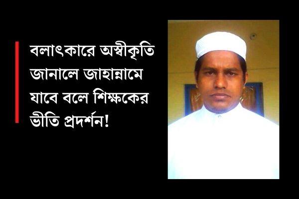 নির্যাতিত ছাত্রটি তার কথা মতো পা টেপা শুর করলে এক পর্যায়ে শিক্ষকটি বর্ণিত ছাত্রের পড়নে থাকা লুঙ্গি খুলে ফেলে। এতে ছাত্রটি অস্বস্তিবোধ করলে শিক্ষক তাকে জোর করে বিছানায় শুইয়ে দেয় ও পায়ুপথে ধর্ষণ করে। ধর্ষণ শেষে লোকজনকে না বলার জন্য ছাত্রটিকে ২০ টাকা দিয়ে তাকে কসম কাটান ওই শিক্ষক এবং কাউকে এ ঘটনা বললে হাফেজ হতে পারবে না, এই মাদ্রাসায় পড়তে পারবে না এবং জাহান্নামে যাবে এমন কথা বলে নির্যাতিতকে ভয়ভীতি প্রদর্শন করেন মুফতী নুর মোহাম্মদ।
