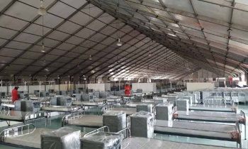 আজ আইসিসিবি’র নির্মাণাধীন হাসপাতাল প্রাঙ্গনে গিয়ে দেখা যায়, ট্রেড সেন্টারের তিনটি ব্লকেই বসানো হয়েছে ফ্লোর ম্যাট। তৈরি হয়ে গেছে হেল্প ডেস্ক, নার্সদের বসার ডেস্ক। বসানো হয়েছে চিকিৎসক, নার্স ও অন্যান্য স্টাফদের কক্ষ। এছাড়া তাঁবুর বাইরে বেডগুলোর বিভিন্ন অংশ যুক্ত করা হচ্ছে, যুক্ত হলেই বেডগুলো নিয়ে ট্রেড সেন্টারের মধ্যে বসানো হচ্ছে।