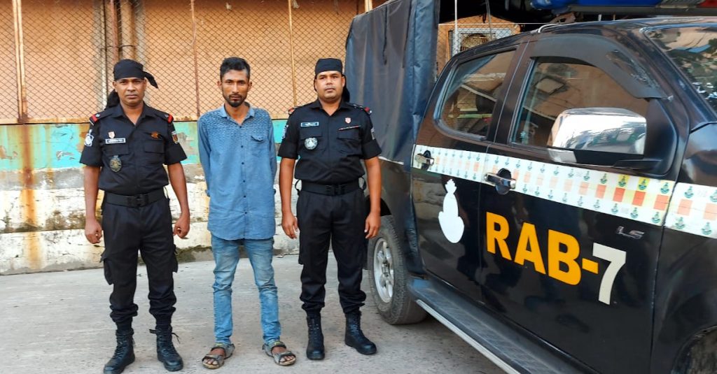 সোমবার (৭ নভেম্বর) বিকেলে গণমাধ্যমে পাঠানো এক সংবাদ বিজ্ঞপ্তিতে এ তথ্য জানায় র‍্যাব। এর আগে শনিবার দুপুরে বহদ্দারহাট বাসটার্মিনাল এলাকায় অভিযান পরিচালনা করে তাকে গ্রেফতার করা হয়।