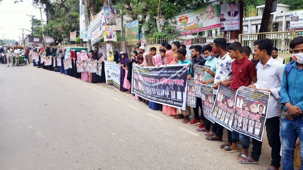 এ সময় মানববন্ধনে বক্তব্য রাখেন নিহত আব্দুল খালেকের মা মমতাজ বেগম, স্ত্রী খালেছা বেগম, নিহত যুবলীগ নেতা টিপুর ছোট ভাই হেফাজ উদ্দীন, স্ত্রী ববি আক্তার সহ স্থানীয় বিভিন্ন পেশাজীবি, রাজনৈতি ব্যাক্তিবর্গ।
