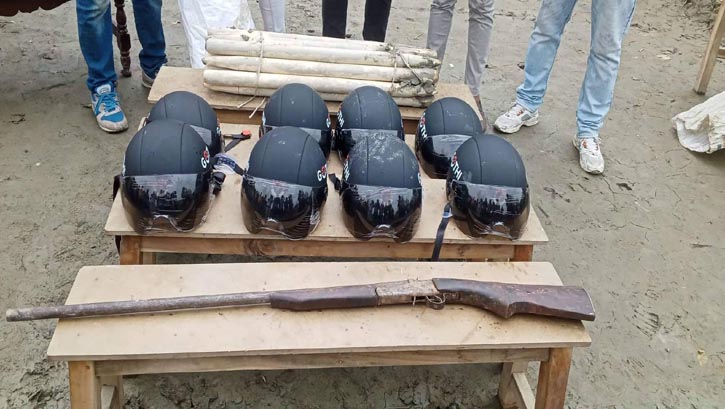 চট্টগ্রামের বাঁশখালী ১২ নম্বর ছনুয়া ইউনিয়ন ১ নম্বর ওয়ার্ডের ভোটকেন্দ্রের পাশের একটি মাঠ থেকে ১টি পরিত্যক্ত অস্ত্র, ১৬টি ক্রিকেট স্টাম্প ও ৮টি হেলমেট উদ্ধার করেছে র্যাব।