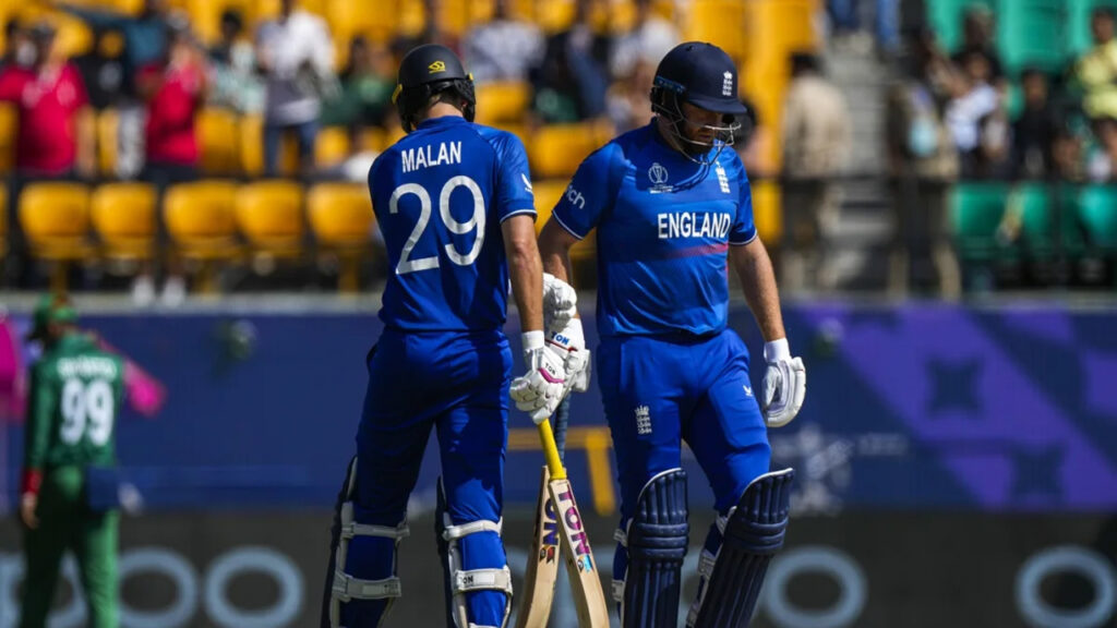 তবে প্রথম উইকেটটা অবশ্য এনে দিয়েছিলেন অধিনায়ক সাকিব আল হাসান। ফ্লিক করতে গিয়ে সাকিবের স্লোয়ারে বোল্ড হন ৫৯ বলে ৫২ রান করে। হাফ সেঞ্চুরি করেন তিনে নামা জো রুটও। বিশ্বকাপে তৃতীয়বারের মতো কোনো দলের তিন টপ-অর্ডার ব্যাটার বাংলাদেশের বিপক্ষে হাফ সেঞ্চুরি ছুন।