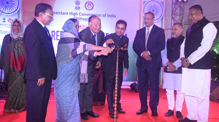 জমকালো আয়োজনের মধ্য দিয়ে চট্টগ্রামে উদযাপিত হয়েছে ভারতের ৭৫তম প্রজাতন্ত্র দিবস। শুক্রবার (২৬ জানুয়ারি) রাতে সহকারী হাইকমিশন প্রাঙ্গনে এই উপলক্ষে সংবর্ধনা ও সাংস্কৃতিক অনুষ্ঠানের আয়োজন করা হয়।