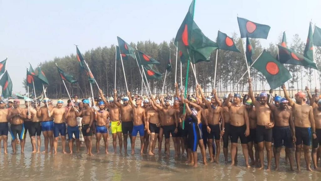 ‘ফরচুন বাংলা চ্যানেল সাঁতার-২০২১’ স্লোগানে বাংলা চ্যানেল সাঁতারের আয়োজন করেছে ষড়জ অ্যাডভেঞ্চার ও এক্সট্রিম বাংলা। এবারের ৭৯ জন সাঁতারু-এর মাঝে একজন ফ্রান্সের নাগরিক ও এক নারী রয়েছেন। সাঁতরে ১৬ দশমিক ১ কিলোমিটার সমুদ্রপথ পাড়ি দিয়ে সেন্টমার্টিনে পাড়ি জমান তারা। এ সময় দ্বীপের বাসিন্দারা তাদেরকে ফুল দিয়ে অভিনন্দন জানান।