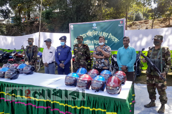 পার্বত্য চট্টগ্রাম শান্তিচূক্তির দুই যুগপূর্তি উপলক্ষে কাপ্তাই জোনের আওতাধীন রাজস্থলী উপজেলার বাঙালহালিয়া সাব-ক্যাম্পের সহযোগিতায় অটল ৫৬ কাপ্তাই জোনের ব্যবস্থাপনায় মোটর বাইক চালকদের মাঝে হেলমেট বিতরণ করা হয়েছে।