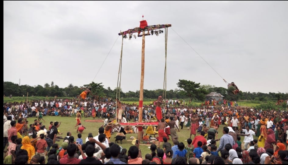 পহেলা বৈশাখ হতো অনুষ্ঠান। এটা খুব দ্রুত ছড়িয়ে পড়ে বিভিন্ন রাজ্যে। ভূস্বামী কিংবা জমিদারের আঙিনা হয়ে সাধারণ ব্যাবসায়ী পর্যন্ত। কিছু কিছু জায়গায় খাজনা দিতে না পারায়, বড়শীতে গেঁথে চরকে করে ঘোরাত জমিদার কিংবা ভূস্বামীরা। বলা হয়ে থাকে এমন অমানবিক নির্যাতনের বিষয়টি ১৮৯০ সাল পর্যন্ত প্রচলিত ছিলো। এটা এখন চড়ক মেলার একটা অংশ হয়ে গেছে। এর সঙ্গে কিছু পৌরানিক কাহিনি প্রচলিত রয়েছে। চৈত্র মাসের পূণ্য লগ্নে, শিব ও কালীর মিলন হয় বলে সনাতন ধর্মের মানুষ বিশ্বাস করেন। এ জন্য বৃহত্তর আঙ্গিকে পুজোর আয়োজন করা হয়। দোল বা হোলিউৎসবের উৎপত্তি এই বিশ্বাস থেকেই। এই উপলক্ষে হয় চড়ক পুজা। সন্তান প্রাপ্তি, দুরারোগ্য ব্যাধি থেকে মুক্তি, মনের বাসনা পূরণের উদ্দেশ্যে পুজা করা হয়। আয়োজিত হয় মেলা। রাজশাহী, খুলনা, রংপুর বিভাগের বিভিন্ন স্থানের পাশাপাশি টাংগাইল, জামালপুর, শেরপুর, ময়মনসিংহ এলাকায়ও চড়ক পুজার আয়োজন হয়ে থাকে।