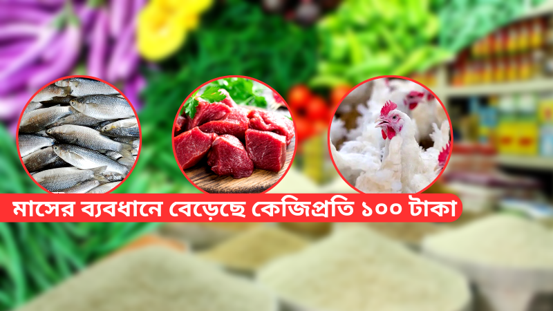 গত মাসেই গরুর মাংসের দাম ছিল ৬৫০-৭০০ টাকা, তা এখন বেড়ে ৭৫০- ৮৫০ টাকা। খাসি ছিল ৯০০-১০০০ টাকা, কিন্তু এখন বিক্রি হচ্ছে ১১০০ থেকে ১২০০ টাকায়।