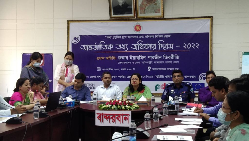 ‘তথ্য প্রযুক্তির যুগে জনগণের তথ্য অধিকার নিশ্চিত হোক’— এই প্রতিপাদ্যকে সামনে রেখে বান্দরবানে পালিত হয়েছে আন্তর্জাতিক তথ্য অধিকার দিবস।