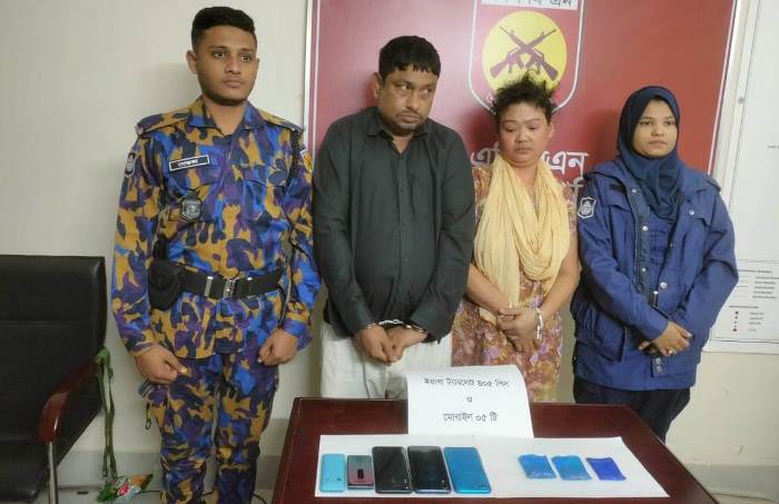 আটককৃত দম্পতি- নয়ন চৌধুরী (৪৫) ও তার স্ত্রী বেবি চৌধুরী প্রকাশ ম্রামুয় চিং মার্মা(৩০)। তারা পৌর এলাকার মেম্বার পাড়া বাসিন্দা।