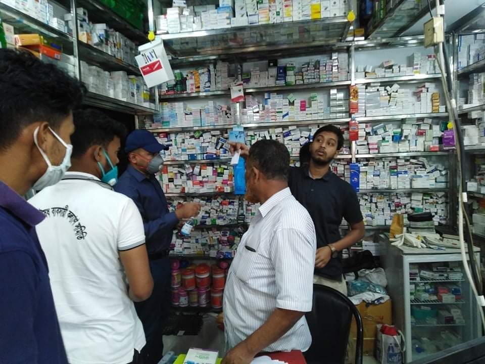 রুহুল আমিন বাংলাধারাকে জানান, দরবার ফার্মেসী তে অভিযান কালে দেখা যায় ২০০ টাকার হ্যান্ড স্যানিটাইজার ৩৫০ টাকা বা তারও বেশি দামে বিক্রি করছেন। ২৮ টি হ্যান্ড স্যানিটাই জব্দ করা হয় এবং ১০ হাজার টাকা জরিমানা করা হয় ও মুচলেকা নেয়া হয়। জব্দকৃত হ্যান্ড স্যানিটাইজার বিভিন্ন ইউনিয়ন পর্যায়ে করোনা নিয়ে কাজ করা গ্রাম পুলিশ কে হস্তান্তর করা হয়।
