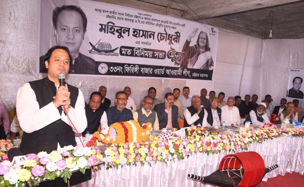 চট্টগ্রাম-৯ সংসদীয় আসনের আওয়ামী লীগ মনোনীত নৌকা প্রতীকের প্রার্থী ব্যারিষ্টার মহিবুল হাসান চৌধুরী নওফেল বলেছেন, বিএনপি-জামাআত জোট বেঁধেছে দেশকে ধ্বংস করার জন্য। আওয়ামী লীগ বীর বাঙালীকে নিয়ে জোট বেঁধেছে সুরক্ষার জন্য। আওয়ামী লীগ ক্ষমতায় থাকলে আমাদের জাতীস্বত্বার সুরক্ষা হবে এবং ৭১’র পরাজিত অপশক্তির চির সমাধি হবে। তাই শেখ হাসিনার নৌকে প্রতীকে ভোট দিয়ে জাতির উজ্জ্বল উদ্ধারে শরীক হোন।