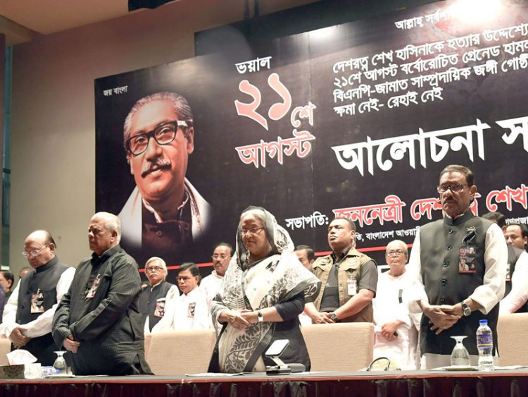 বুধবার (২১ আগস্ট) বিকেলে রাজধানীর খামারবাড়ির কৃষিবিদ ইনিস্টিটিউশন মিলনায়তনে আওয়ামী লীগ আয়োজিত স্মরণসভায় প্রধানমন্ত্রী শেখ হাসিনা এ সব কথা বলেন। ২১ শে আগস্ট গ্রেনেড হামলায় নিহত ও আহতদের স্মরণে এ আলোচনা সভা অনুষ্ঠিত হয়।