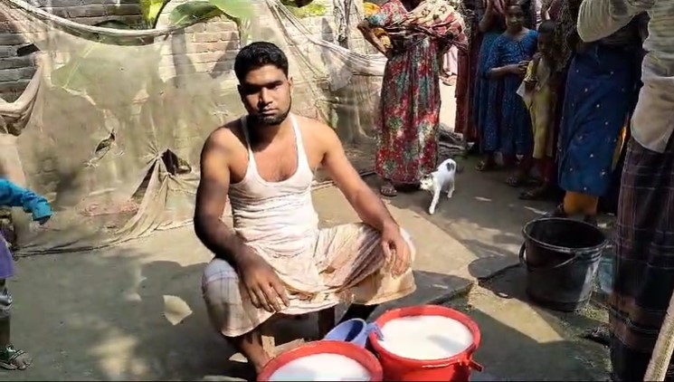 গত বৃহস্পতিবার (২১ ডিসেম্বর) তার স্ত্রী ওমেনুর বেগমের পাঠানো ডিভোর্সের কাগজ পেয়ে সেই কাগজে স্বাক্ষর করে মনের আনন্দে তার নিজ বাড়িতে ২০ লিটার দুধ দিয়ে গোসল করেন আকতারুল।