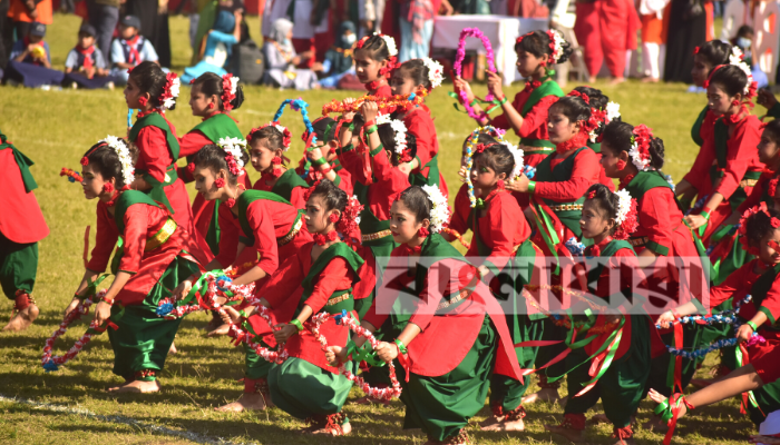 লাল শাড়ি- সবুজ ব্লাউজ ও থ্রি পিচ পরিহিত বিভিন্ন শিক্ষার্থীরা পুরো স্টেডিয়াম মাতিয়ে তুলেছে। সন্ধ্যা ৬টায় আয়োজন করা হয়েছে জমকালো আতশবাজি ও লেজার শো’র।