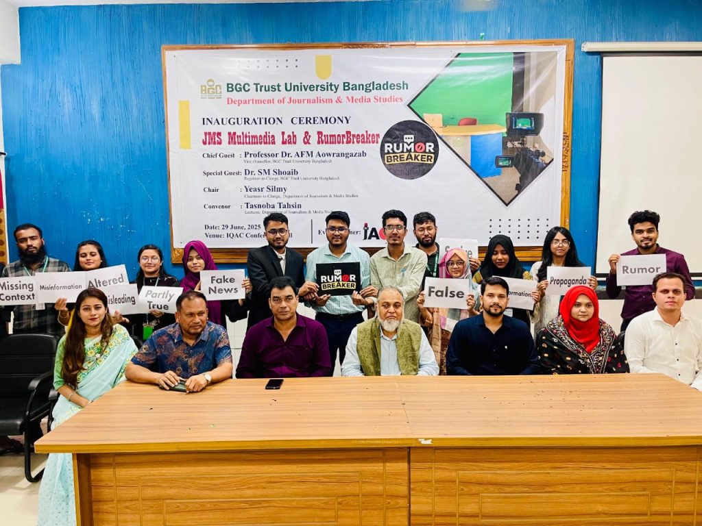 চট্টগ্রামে প্রথমবারের মতো বেসরকারি বিশ্ববিদ্যালয় বিজিসি ট্রাস্ট এর শিক্ষার্থীদের নিজস্ব উদ্যোগে যাত্রা শুরু করল একটি গুজব প্রতিরোধমূলক ফ্যাক্ট-চেকিং প্ল্যাটফর্ম—‘রিউমার ব্রেকার’। বিজিসি ট্রাস্ট ইউনিভার্সিটি বাংলাদেশের সাংবাদিকতা ও গণযোগাযোগ বিভাগের তত্ত্বাবধানে এবং বিভাগটির শিক্ষার্থীদের ব্যবস্থাপনায় প্রতিষ্ঠানটি আনুষ্ঠানিকভাবে আত্মপ্রকাশ করে।