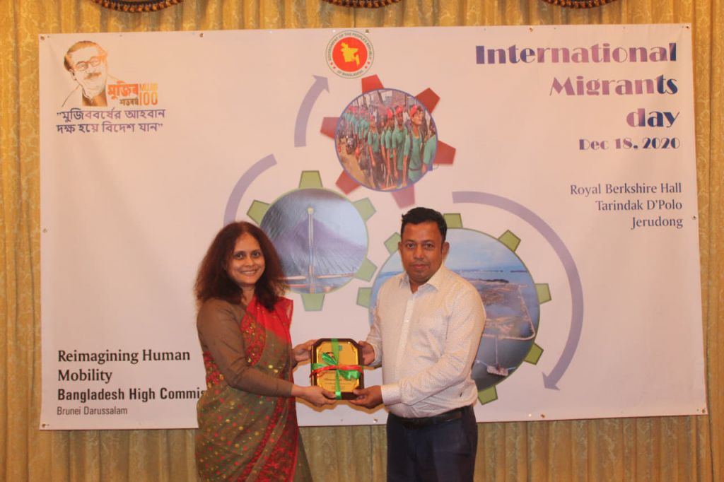 শুক্রবার (১৮ ডিসেম্বর) আন্তর্জাতিক অভিবাসী দিবস উপলক্ষে ব্রুনাইস্থ বাংলাদেশ হাই কমিশনের উদ্যোগে বন্দর সেরি বেগাওয়ানের অদূরে জেরুডং এলাকার রয়্যাল বার্কশায়ারের কান্ট্রি ক্লাবে আয়োজিত আলোচনায় সভায় সভাপতিত্বে বক্তব্যে তিনি এসব কথা বলেন। ব্রুনাইস্থ বাংলাদেশ হাই কমিশনের এক প্রেস বিজ্ঞপ্তিতে এতথ্য জানানো হয়েছে।