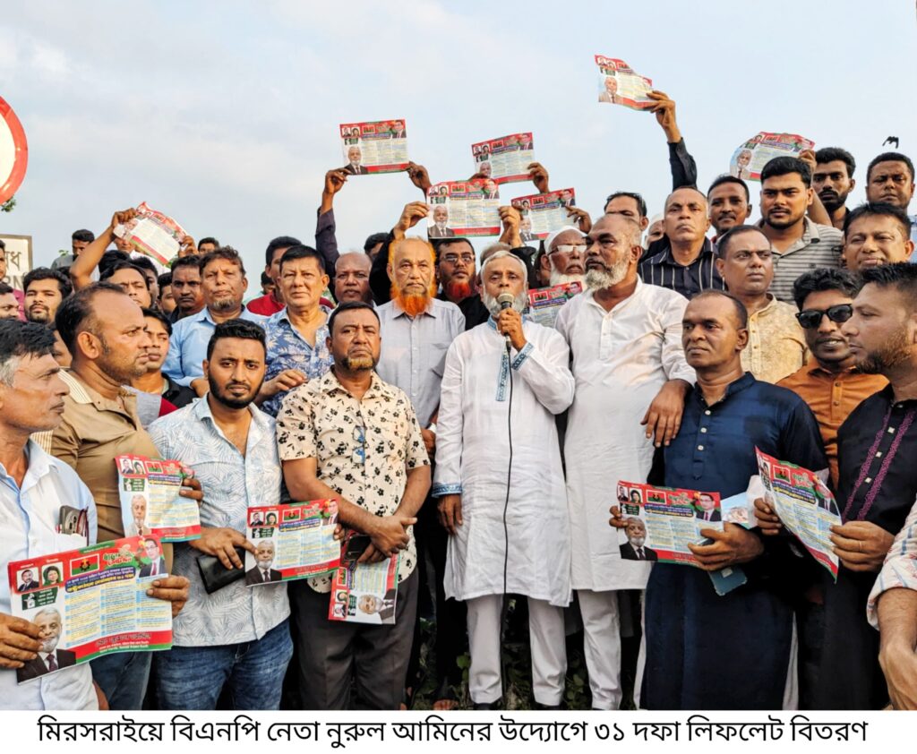 চট্টগ্রাম উত্তর জেলা বিএনপির সাবেক যুগ্ম আহ্বায়ক ও চট্টগ্রাম-১ (মিরসরাই) আসনে ধানের শীষ প্রতীকের মনোনয়ন প্রত্যাশী মো. নুরুল আমিন বলেছেন, “আগামী নির্বাচনে মানবিক, সাম্য ও গণতান্ত্রিক বাংলাদেশ বিনির্মাণে দেশনায়ক তারেক রহমানের প্রস্তাবিত ৩১ দফার বিকল্প নেই। এই ৩১ দফা বাস্তবায়নের জন্য ঘরে ঘরে লিফলেট পৌঁছে দিতে হবে।”
