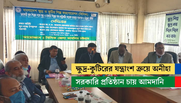 বুধবার বিসিক চট্টগ্রাম কার্যালয়ের সভাকক্ষে প্রায় অর্ধশত ক্ষুদ্র ও কুটির শিল্প উদ্যোক্তার আলোচনা থেকে বেশকিছু অভিযোগ উঠে এসেছে। এরমধ্যে রয়েছে, আমদানি নির্ভর বৃহদায়তন প্রতিষ্ঠানগুলোর অনীহার কারনে ক্ষুদ্র ও কুটির শিল্প রুগ্ন শিল্পে পরিণত হচ্ছে। দেশীয় পণ্য ব্যবহার না করে ৩১টি সরকারি বৃদায়তন প্রতিষ্ঠান বিসিকের আওতায় থাকা প্রতিষ্ঠানগুলোকে রুগ্ন করে দিচ্ছে বলে অভিযোগ রয়েছে। এক্ষেত্রে সাব-কন্ট্রাকটিং প্রতিষ্ঠানের মালিকরা দাবি করছে বিসিকের মনিটরিং না থাকায় সরকারি প্রতিষ্ঠানগুলো ক্ষুদ্র ও কুটির শিল্পে তৈরি পণ্যগুলো ব্যবহার করছে না। গুণগত মানের দোহাই দিয়ে বৃহদায়তন সরকারি প্রতিষ্ঠানগুলো দেশীয় ক্ষুদ্র প্রতিষ্ঠানগুলোকে এড়িয়ে যাচ্ছে।