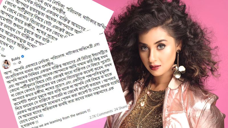 বুবলী লিখেছেন, ‘আপনি অনেক সিনিয়র একজন ব্যক্তিত্ব আমাদের এই মিডিয়া ইন্ডাস্ট্রিতে এবং আপনার দ্বায়বদ্ধতা অনেক। আপনাকে আমি সম্মান করি কিন্তু যখন কোনও পার্টিকুলার বিষয়ে যেটা একান্তই কারও ব্যক্তিগত, সে বিষয়ে পুরোটা না জেনে কোথাও বিচারকের মত কোনও বিচারমূলক কমেন্ট করেন, তখন আপনার কথার ভঙ্গিমা, শব্দের প্রয়োগ এবং একদিকে পক্ষপাতিত্বমূলক কমেন্টটা শুনলে বুঝতে আর বাকি থাকে না, আপনি সেই বিষয়ে বা যাকে নিয়ে বলছেন, সে ব্যক্তিকে প্রপারলি না জেনেই কমেন্ট করছেন।’