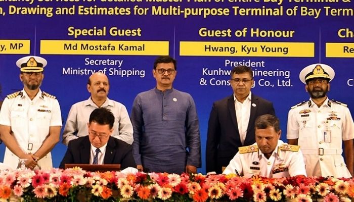 চট্টগ্রাম বন্দরের বে-টার্মিনাল প্রকল্পের বিস্তারিত মহাপরিকল্পনা প্রণয়ন এবং চট্টগ্রাম বন্দরের অধিনে মাল্টিপারপাস টার্মিনালের বিস্তারিত প্রকৌশল নকশা, ড্রয়িং ও প্রাক্কলনে পরামর্শক সেবার জন্য মঙ্গলবার চট্টগ্রাম বন্দর কর্তৃপক্ষ ও কুনহোয়াইঞ্জিনিয়ারিং এন্ড কন্সাল্টিং কোম্পনি লিমিটেড-ডি ওয়াই ইঞ্জিনিয়ারিং যৌথ কোম্পনির মধ্যে চুক্তি সাক্ষরিত হয়। দক্ষিণ কোরিয়ার যৌথ প্রতিষ্ঠান প্রকল্পের মহাপরিকল্পনা প্রণয়নের সাথে বে-টার্মিনাল নির্মাণ কাজের তদারকিও করবে। এজন্য ব্যয় হবে ১২৬ কোটি ৪৯ লাখ ৭৩ হাজার টাকা। সম্পূর্ণ বে-টার্মিনাল প্রকল্পের ব্যয় প্রাক্কলন করা হয়েছে ২১০ কোটি ডলার।