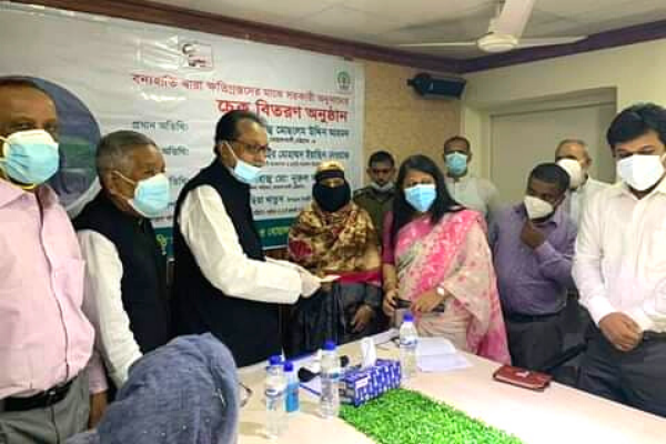 নিহত চারজনের প্রত্যেক পরিবারকে ১,০০,০০/-, আহত একজনকে ৫০,০০০/- এবং ফসলের ক্ষতি হয়েছে এমন একজনকে ১৫,০০০/-, দুইজনকে ২০,০০০/-, ছয়জনকে ২৫,০০০/- মোট ৬,৫৫,০০০/- টাকার অনুদানের চেক তুলে দেয়া হয়।