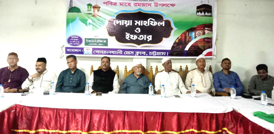 পবিত্র মাহে রমজান উপলক্ষে চট্টগ্রামের বোয়ালখালী প্রেস ক্লাবের ইফতার ও দোয়া মাহফিল অনুষ্ঠিত হয়েছে। সোমবার (১৮ মার্চ) উপজেলা বিআরডিবি প্রশিক্ষণ হল রুমে অনুষ্ঠিত রমজানের তাৎপর্য শীর্ষক আলোচনা সভায় সভাপতিত্ব করেন ক্লাবের সভাপতি এস এম মোদ্দাচ্ছের।
