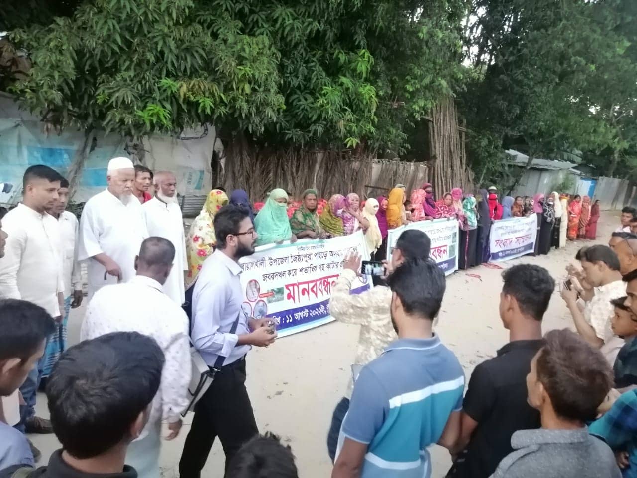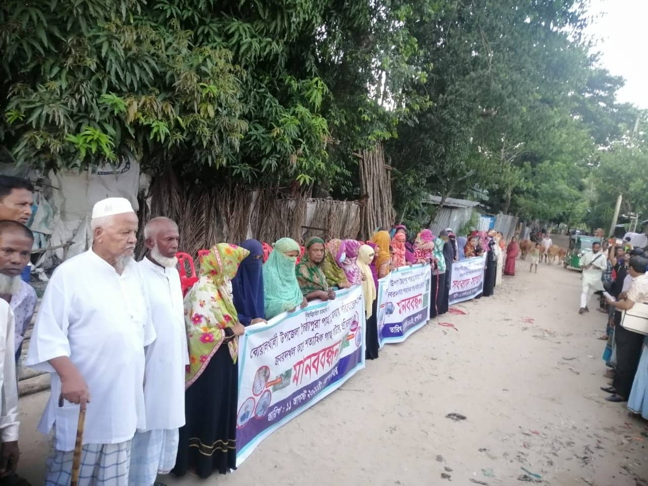 মো. ইউছুপ জানান, রাজা মিয়া ও তার পরিবার পাহাড়ের সাধারণ মানুষের পাহাড়ি জায়গা দখল করে আসছে। এরই ধারাবাহিকতায় ইউছুপের পাহাড়ি জায়গা দখল করার জন্য বাগানে শতাধিক গাছ কেটে দিয়েছে। তাই এলাকাবাসী প্রতিবাদ জানিয়ে মানববন্ধন করেছেন।