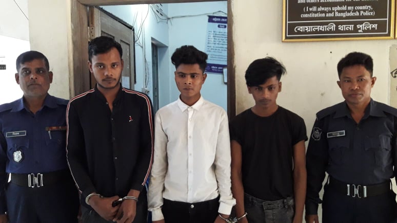 গ্রেফতারকৃতরা হলেন, উপজেলার পূর্ব কধুরখীল গ্রামের নুরে আলম সওদাগর বাড়ীর মাহবুব আলমের ছেলে মো. সাজ্জাদ হোসেন (২৪), মৃত ইসমাইল হোসেনের ছেলে মো. ইয়াছিন আরাফাত (১৭) ও জয়নাল আবেদীনের ছেলে মো. সাগর (১৮)।