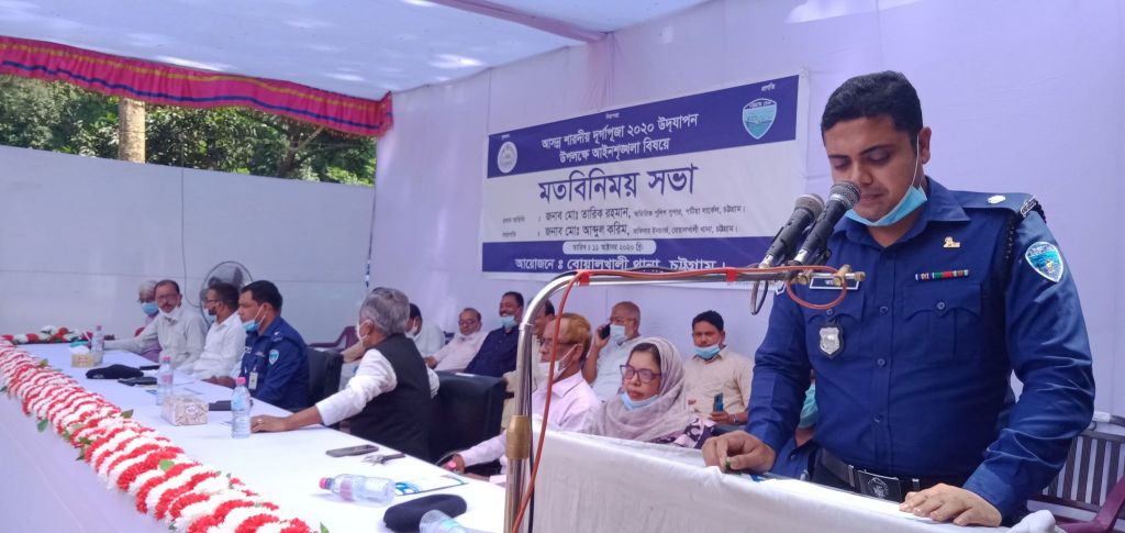 অনুষ্ঠানে অতিরিক্ত পুলিশ সুপার মো. তারিক রহমান বলেন, বৈশ্বিক মহামারি করোনার কারণে এবারে পূজার প্রেক্ষাপট ভিন্ন। প্রতি বছর দুর্গাপূজাকে ঘিরে সকলের মাঝে যে উৎসবের আমেজ বয়ে যেতো তা এবার আমরা করতে পারছি না। মহামারি প্রতিরোধে সরকারি নির্দেশনা মেনে ধর্মীয় কার্যক্রমগুলো সম্পন্ন করার আহবান জানিয়েছেন তিনি।