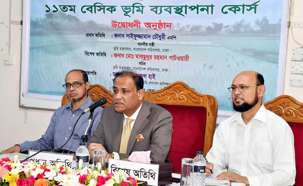 ব্রিটিশ আমলের ভূমি বিষয়ক আইন পর্যায়ক্রমে যুগোপযোগী করার ব্যবস্থা গ্রহণ করা হচ্ছে বলে জানিয়েছেন ভূমিমন্ত্রী সাইফুজ্জামান চৌধুরী। ৮ জুলাই সোমবার রাজধানীর কাঁটাবনে অবস্থিত ভূমি প্রশাসন প্রশিক্ষণ কেন্দ্রে চার সপ্তাহের ‘১১ তম বেসিক ভূমি ব্যবস্থাপনা প্রশিক্ষণ কোর্স’ এর উদ্বোধনকালে কোর্সে অংশগ্রহণকারী নবনিযুক্ত সহকারী কমিশনার (ভূমি)/এসিল্যান্ডদের উদ্দেশ্যে তিনি এ কথা বলেন।