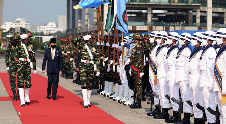 রাষ্ট্রপতি মো. আব্দুল হামিদ, মন্ত্রিসভার সিনিয়র সদস্য ও উচ্চপদস্থ বেসামরিক এবং সামরিক কর্মকর্তাদের সঙ্গে নিয়ে ব্রুনাইয়ের সুলতানকে বিমানবন্দরে স্বাগত জানান।