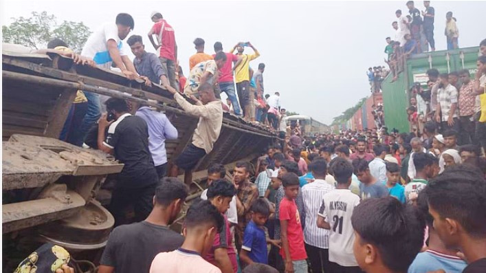 ঘটনাস্থলে থাকা ভৈরব রেলওয়ে থানার এস আই মির্জা মো. মুক্তা বলেন, দুর্ঘটনায় উল্টে যাওয়া বগিগুলোর নিচে কেউ চাপা পড়ে আছে কি না, তা দেখছেন উদ্ধারকর্মীরা। বিপুল সংখ্যক উৎসুক জনতা ভিড় করে আছেন সেখানে।