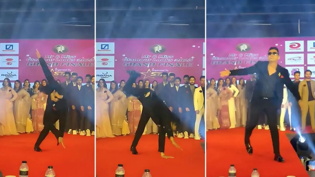 শুক্রবার (২৭ অক্টোবর) সন্ধ্যায় রাজধানীর গুলশান ক্লাবে ‘মিস্টার অ্যান্ড মিসেস গ্ল্যামার’ (সিজন ৩)-এর ফাইনাল রাউন্ডে বিচারকের দায়িত্ব পালন করতে গিয়েছিলেন জায়েদ খান। সেখানে মঞ্চে অন্যদের অনুপ্রাণিত করতে দেন সাইড ডিগবাজি। ভিডিওতে দেখা যায়, দৌড়ে গিয়ে দু’হাতে ভর করে দিয়েছেন ডিগবাজি এবং সফলভাবে নাচটাও সেরেছেন।
